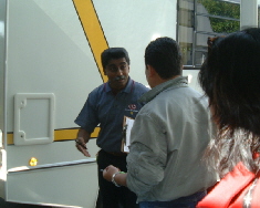 程なくして、2人が出てきた。その後ろから担当の方が。一見、インド系かスリランカの方だろうか、小柄な男性はすてきな笑顔で挨拶してくれた。いよいよ、私達のモーターホームと対面の時がやってきた。